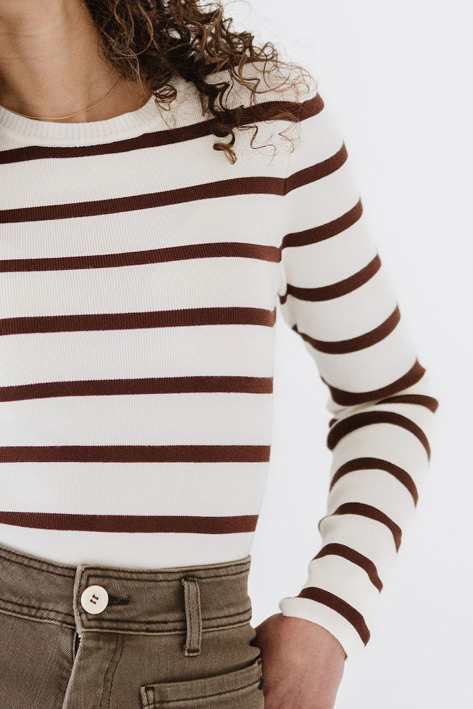 Read between the lines ladies...lineslineslineslines Sometimes we just need a really good not-so-neutral neutral that we can always count on. It's reliable and comfortable. It feels like home when you slip it on and know that you can do what needs to be done that day. An ole' faithful of sorts that will ALWAYS have your back (and front). It's a bodysuit and we love that it leaves nothing to chance-you put it on and it stays put. Cream & brown and cream & navy...covers all the basics in a better than white and black type of way. Soft, comfortable, sturdy and obviously so cute! lineslineslineslines